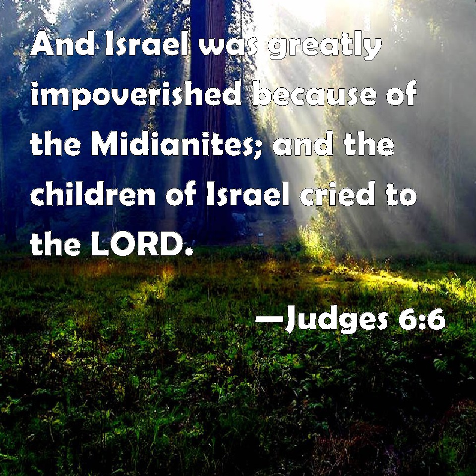 Judges 6:6 And Israel was greatly impoverished because of the Midianites; and the children of Israel cried to the LORD.