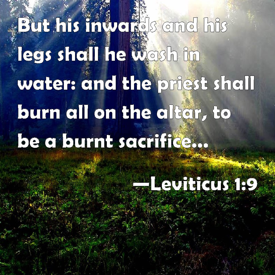 KJV:  But his inwards and his legs shall he wash in water: and the priest shall burn all on the altar, to be a burnt sacrifice, an offering made by fire, of a sweet savour unto the LORD.