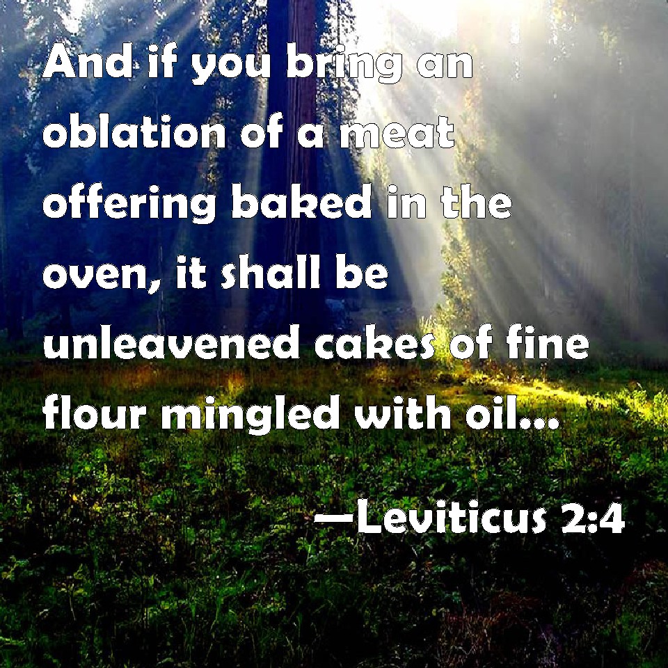 Choose a Background Leviticus 2:4 And if you bring an oblation of a meat offering baked in the oven, it shall be unleavened cakes of fine flour mingled with oil, or unleavened wafers anointed with oil. KJV: And if thou bring an oblation of a meat offering baken in the oven, it shall be unleavened cakes of fine flour mingled with oil, or unleavened wafers anointed with oil. DRB: But when thou offerest a sacrifice baked in the oven of flour, to wit, loaves without leaven, tempered with oil, and unleavened wafers, anointed with oil: DBT: And if thou present an offering of an oblation baken in the oven, it shall be unleavened cakes of fine flour mingled with oil, or unleavened wafers anointed with oil. ERV: And when thou offerest an oblation of a meal offering baken in the oven, it shall be unleavened cakes of fine flour mingled with oil, or unleavened wafers anointed with oil. WBT: And if thou shalt bring an oblation of a meat-offering baked in the oven, it shall be unleavened cakes of fine flour mingled with oil, or unleavened wafers anointed with oil. WEB: "'When you offer an offering of a meal offering baked in the oven, it shall be unleavened cakes of fine flour mixed with oil, or unleavened wafers anointed with oil. YLT: And when thou bringest near an offering, a present baked in an oven, it is of unleavened cakes of flour mixed with oil, or thin unleavened cakes anointed with oil.Links Leviticus 2:4 NIV • Leviticus 2:4 NLT • Leviticus 2:4 ESV • Leviticus 2:4 NASB • Leviticus 2:4 KJV • Leviticus 2:4 Interlinear • Leviticus 2:4 Commentaries • Leviticus 2:4 Parallel Texts • Leviticus 2:4 Bible Apps • Leviticus 2:4 Parallel • Bible Hub |