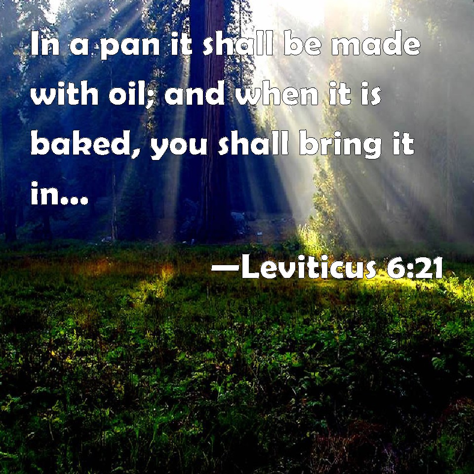 Leviticus 6:21 In a pan it shall be made with oil; and when it is baked, you shall bring it in: and the baked pieces of the meat offering shall you offer for a sweet smell to the LORD.