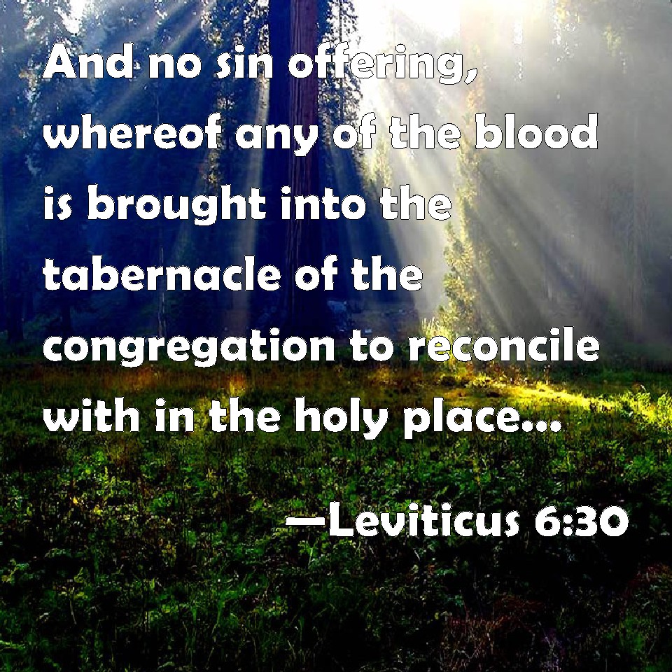 Choose a Background Leviticus 6:30 And no sin offering, whereof any of the blood is brought into the tabernacle of the congregation to reconcile with in the holy place, shall be eaten: it shall be burnt in the fire. KJV: And no sin offering, whereof any of the blood is brought into the tabernacle of the congregation to reconcile withal in the holy place, shall be eaten: it shall be burnt in the fire. DRB: For the victim that is slain for sin, the blood of which is carried into the tabernacle of the testimony to make atonement in the sanctuary, shall not be eaten, but shall be burnt with fire. DBT: And no sin-offering whereof blood hath been brought to the tent of meeting, to make atonement in the sanctuary, shall be eaten: it shall be burned with fire. ERV: And no sin offering, whereof any of the blood is brought into the tent of meeting to make atonement in the holy place, shall be eaten: it shall be burnt with fire. WBT: And no sin-offering, of which any of the blood is brought into the tabernacle of the congregation to make reconciliation in the holy place, shall be eaten: it shall be burnt in the fire. WEB: No sin offering, of which any of the blood is brought into the Tent of Meeting to make atonement in the Holy Place, shall be eaten: it shall be burned with fire. YLT: and no sin-offering, any of whose blood is brought in unto the tent of meeting to make atonement in the sanctuary is eaten; with fire it is burnt.Links Leviticus 6:30 NIV • Leviticus 6:30 NLT • Leviticus 6:30 ESV • Leviticus 6:30 NASB • Leviticus 6:30 KJV • Leviticus 6:30 Interlinear • Leviticus 6:30 Commentaries • Leviticus 6:30 Parallel Texts • Leviticus 6:30 Bible Apps • Leviticus 6:30 Parallel • Bible Hub |