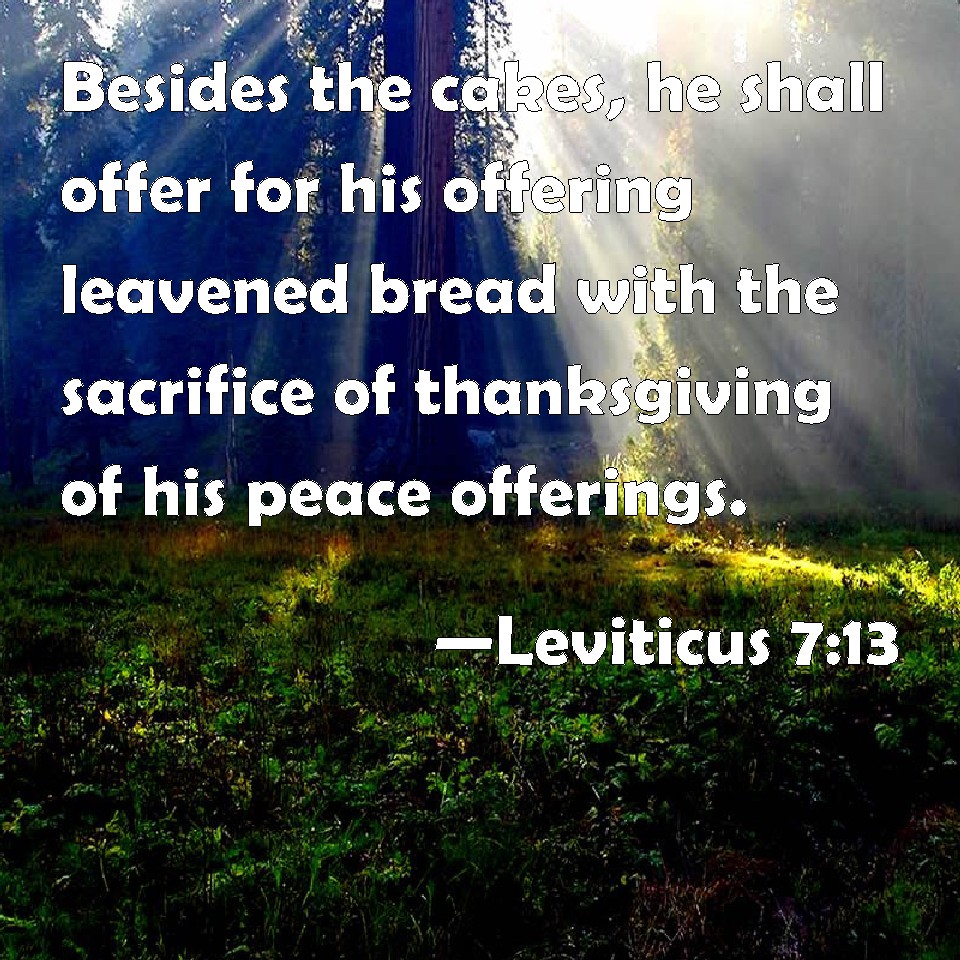 Leviticus 7:13 Besides the cakes, he shall offer for his offering leavened bread with the sacrifice of thanksgiving of his peace offerings.