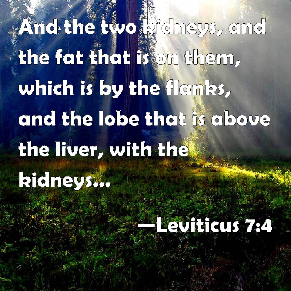 Leviticus 7:4 And the two kidneys, and the fat that is on them, which is by the flanks, and the lobe that is above the liver, with the kidneys, it shall he take away: