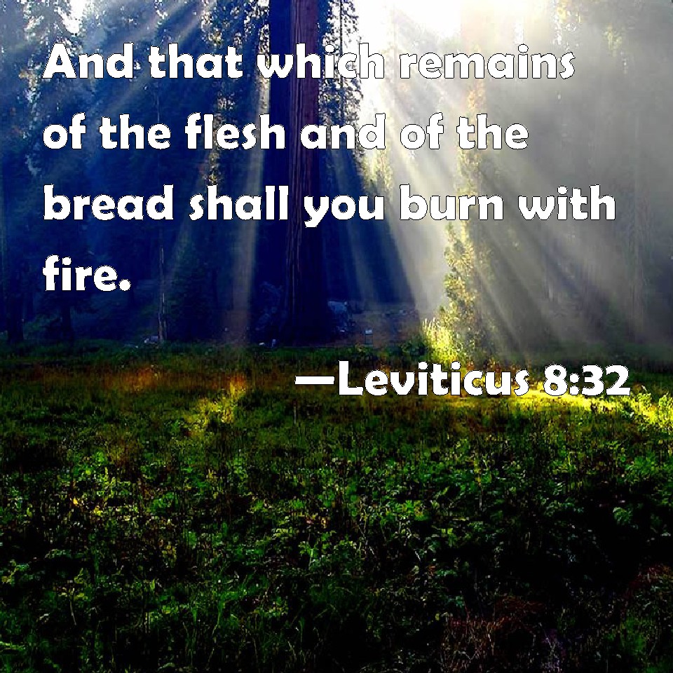 Leviticus 8:32 And that which remains of the flesh and of the bread shall you burn with fire.