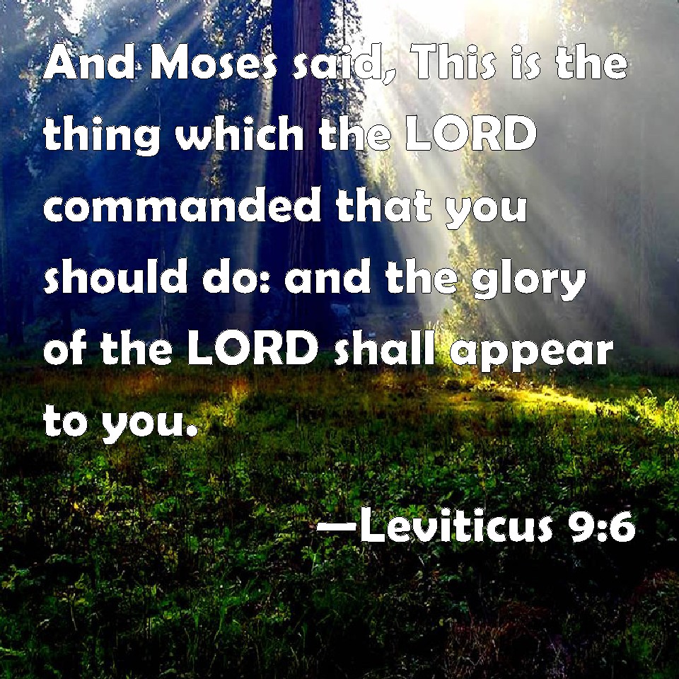 Choose a Background Leviticus 9:6 And Moses said, This is the thing which the LORD commanded that you should do: and the glory of the LORD shall appear to you. KJV: And Moses said, This is the thing which the LORD commanded that ye should do: and the glory of the LORD shall appear unto you. DRB: Moses said: This is the word, which the Lord hath commanded: do it, and his glory will appear to you. DBT: And Moses said, This is the thing which Jehovah has commanded that ye should do; and the glory of Jehovah shall appear to you. ERV: And Moses said, This is the thing which the LORD commanded that ye should do: and the glory of the LORD shall appear unto you. WBT: And Moses said, This is the thing which the LORD commanded that ye should do: and the glory of the LORD shall appear to you. WEB: Moses said, "This is the thing which Yahweh commanded that you should do: and the glory of Yahweh shall appear to you." YLT: and Moses saith, 'This is the thing which Jehovah hath commanded; do it, and the honour of Jehovah doth appear unto you.'Links Leviticus 9:6 NIV • Leviticus 9:6 NLT • Leviticus 9:6 ESV • Leviticus 9:6 NASB • Leviticus 9:6 KJV • Leviticus 9:6 Interlinear • Leviticus 9:6 Commentaries • Leviticus 9:6 Parallel Texts • Leviticus 9:6 Bible Apps • Leviticus 9:6 Parallel • Bible Hub |
