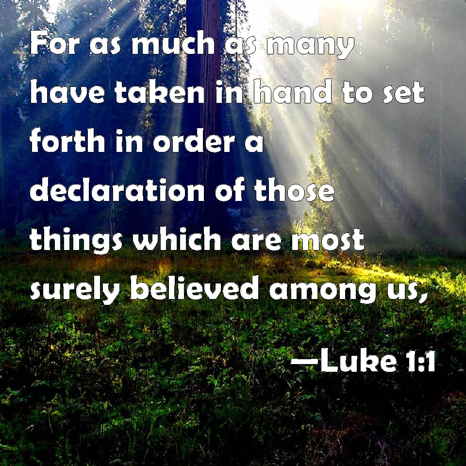 Luke 1:1 For as much as many have taken in hand to set forth in order a declaration of those things which are most surely believed among us,