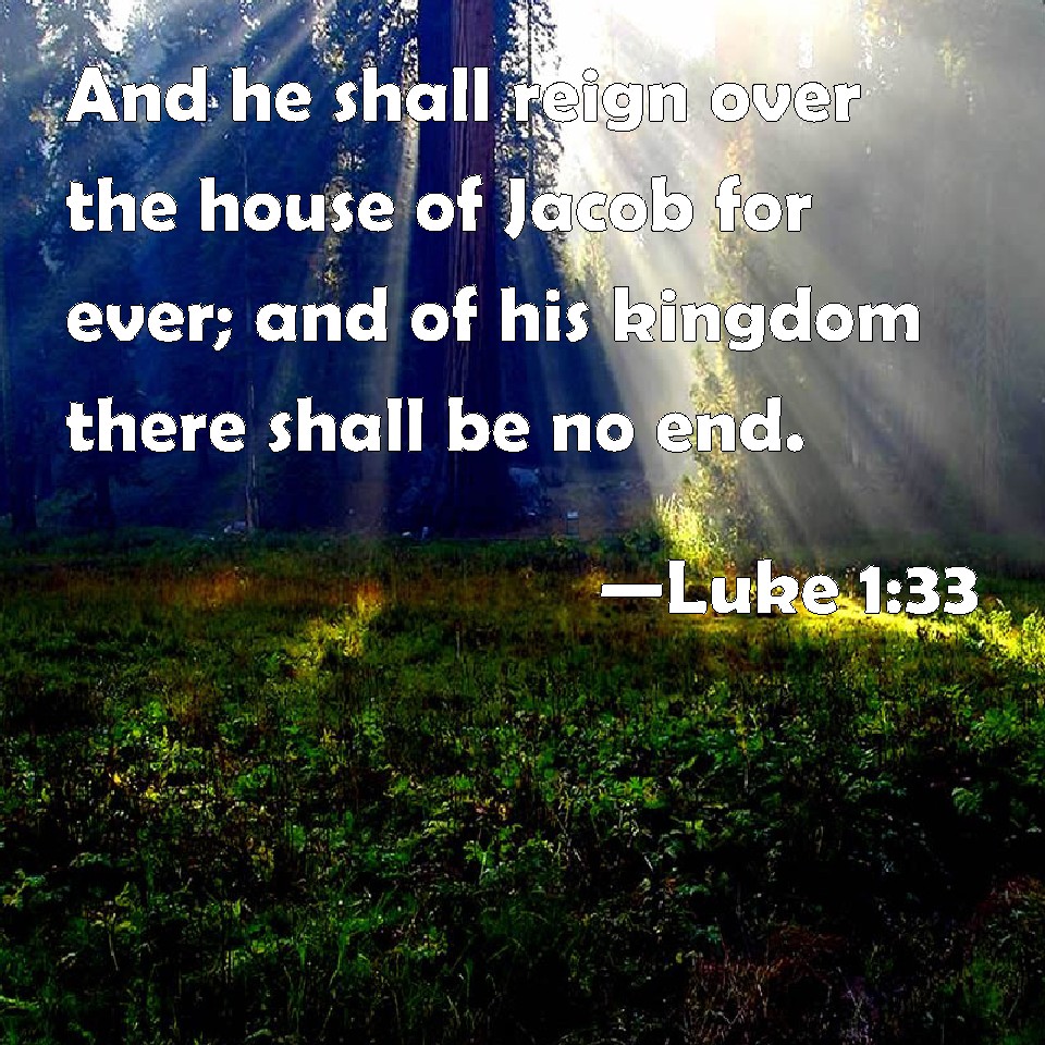 Luke 1:33 And he shall reign over the house of Jacob for ever; and of his kingdom there shall be no end.