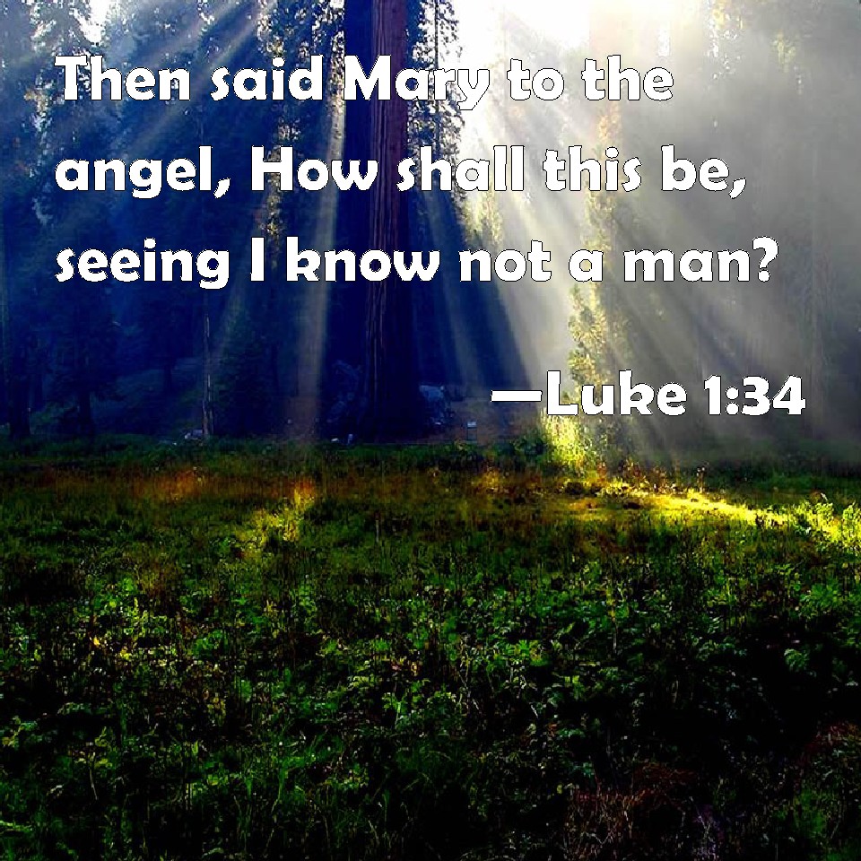 Choose a Background Luke 1:34 Then said Mary to the angel, How shall this be, seeing I know not a man? KJV: Then said Mary unto the angel, How shall this be, seeing I know not a man? DRB: And Mary said to the angel: How shall this be done, because I know not man? DBT: But Mary said to the angel, How shall this be, since I know not a man? ERV: And Mary said unto the angel, How shall this be, seeing I know not a man? WBT: Then said Mary to the angel, How shall this be, seeing I know not a man? WEB: Mary said to the angel, "How can this be, seeing I am a virgin?" YLT: And Mary said unto the messenger, 'How shall this be, seeing a husband I do not know?'Links Luke 1:34 NIV • Luke 1:34 NLT • Luke 1:34 ESV • Luke 1:34 NASB • Luke 1:34 KJV • Luke 1:34 Interlinear • Luke 1:34 Commentaries • Luke 1:34 Parallel Texts • Luke 1:34 Bible Apps • Luke 1:34 Parallel • Bible Hub |