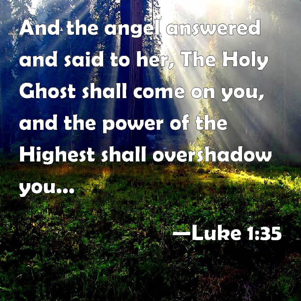 Choose a Background Luke 1:35 And the angel answered and said to her, The Holy Ghost shall come on you, and the power of the Highest shall overshadow you: therefore also that holy thing which shall be born of you shall be called the Son of God. KJV: And the angel answered and said unto her, The Holy Ghost shall come upon thee, and the power of the Highest shall overshadow thee: therefore also that holy thing which shall be born of thee shall be called the Son of God. DRB: And the angel answering, said to her: The Holy Ghost shall come upon thee, and the power of the most High shall overshadow thee. And therefore also the Holy which shall be born of thee shall be called the Son of God. DBT: And the angel answering said to her, The Holy Spirit shall come upon thee, and power of the Highest overshadow thee, wherefore the holy thing also which shall be born shall be called Son of God. ERV: And the angel answered and said unto her, The Holy Ghost shall come upon thee, and the power of the Most High shall overshadow thee: wherefore also that which is to be born shall be called holy, the Son of God. WBT: And the angel answered and said to her, The Holy Spirit will come upon thee, and the power of the Highest will overshadow thee: therefore also that holy thing which shall be born of thee shall be called the Son of God. WEB: The angel answered her, "The Holy Spirit will come on you, and the power of the Most High will overshadow you. Therefore also the holy one who is born from you will be called the Son of God. YLT: And the messenger answering said to her, 'The Holy Spirit shall come upon thee, and the power of the Highest shall overshadow thee, therefore also the holy-begotten thing shall be called Son of God;Links Luke 1:35 NIV • Luke 1:35 NLT • Luke 1:35 ESV • Luke 1:35 NASB • Luke 1:35 KJV • Luke 1:35 Interlinear • Luke 1:35 Commentaries • Luke 1:35 Parallel Texts • Luke 1:35 Bible Apps • Luke 1:35 Parallel • Bible Hub |