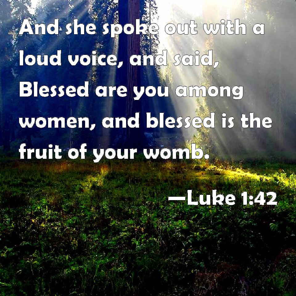 Choose a Background Luke 1:42 And she spoke out with a loud voice, and said, Blessed are you among women, and blessed is the fruit of your womb. KJV: And she spake out with a loud voice, and said, Blessed art thou among women, and blessed is the fruit of thy womb. DRB: And she cried out with a loud voice, and said: Blessed art thou among women, and blessed is the fruit of thy womb. DBT: and cried out with a loud voice and said, Blessed art thou amongst women, and blessed the fruit of thy womb. ERV: and she lifted up her voice with a loud cry, and said, Blessed art thou among women, and blessed is the fruit of thy womb. WBT: And she spoke with a loud voice, and said, Blessed art thou among women, and blessed is the fruit of thy womb. WEB: She called out with a loud voice, and said, "Blessed are you among women, and blessed is the fruit of your womb! YLT: and spake out with a loud voice, and said, 'Blessed art thou among women, and blessed is the fruit of thy womb;Links Luke 1:42 NIV • Luke 1:42 NLT • Luke 1:42 ESV • Luke 1:42 NASB • Luke 1:42 KJV • Luke 1:42 Interlinear • Luke 1:42 Commentaries • Luke 1:42 Parallel Texts • Luke 1:42 Bible Apps • Luke 1:42 Parallel • Bible Hub |