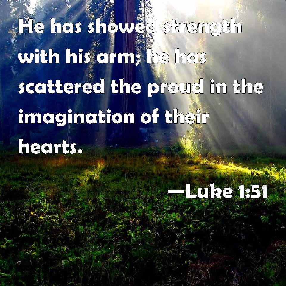 Luke 1:51 He has showed strength with his arm; he has scattered the proud in the imagination of their hearts.