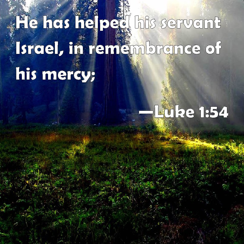 Choose a Background Luke 1:54 He has helped his servant Israel, in remembrance of his mercy; KJV: He hath holpen his servant Israel, in remembrance of his mercy; DRB: He hath received Israel his servant, being mindful of his mercy: DBT: He has helped Israel his servant, in order to remember mercy, ERV: He hath holpen Israel his servant, That he might remember mercy WBT: He hath sustained his servant Israel, in remembrance of his mercy; WEB: He has given help to Israel, his servant, that he might remember mercy, YLT: He received again Israel His servant, To remember kindness,Links Luke 1:54 NIV • Luke 1:54 NLT • Luke 1:54 ESV • Luke 1:54 NASB • Luke 1:54 KJV • Luke 1:54 Interlinear • Luke 1:54 Commentaries • Luke 1:54 Parallel Texts • Luke 1:54 Bible Apps • Luke 1:54 Parallel • Bible Hub |