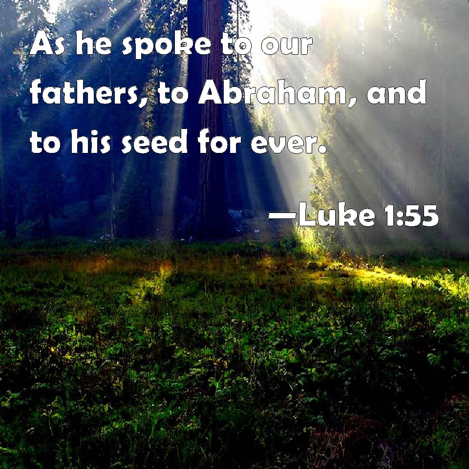 Choose a Background Luke 1:55 As he spoke to our fathers, to Abraham, and to his seed for ever. KJV: As he spake to our fathers, to Abraham, and to his seed for ever. DRB: As he spoke to our fathers, to Abraham and to his seed for ever. DBT: (as he spoke to our fathers,) to Abraham and to his seed for ever. ERV: (As he spake unto our fathers) Toward Abraham and his seed for ever. WBT: As he spoke to our fathers, to Abraham, and to his seed for ever. WEB: As he spoke to our fathers, to Abraham and his seed forever." YLT: As He spake unto our fathers, To Abraham and to his seed — to the age.'Links Luke 1:55 NIV • Luke 1:55 NLT • Luke 1:55 ESV • Luke 1:55 NASB • Luke 1:55 KJV • Luke 1:55 Interlinear • Luke 1:55 Commentaries • Luke 1:55 Parallel Texts • Luke 1:55 Bible Apps • Luke 1:55 Parallel • Bible Hub |