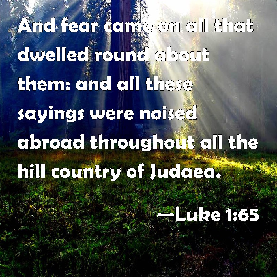 Luke 1:65 And fear came on all that dwelled round about them: and all these sayings were noised abroad throughout all the hill country of Judaea.