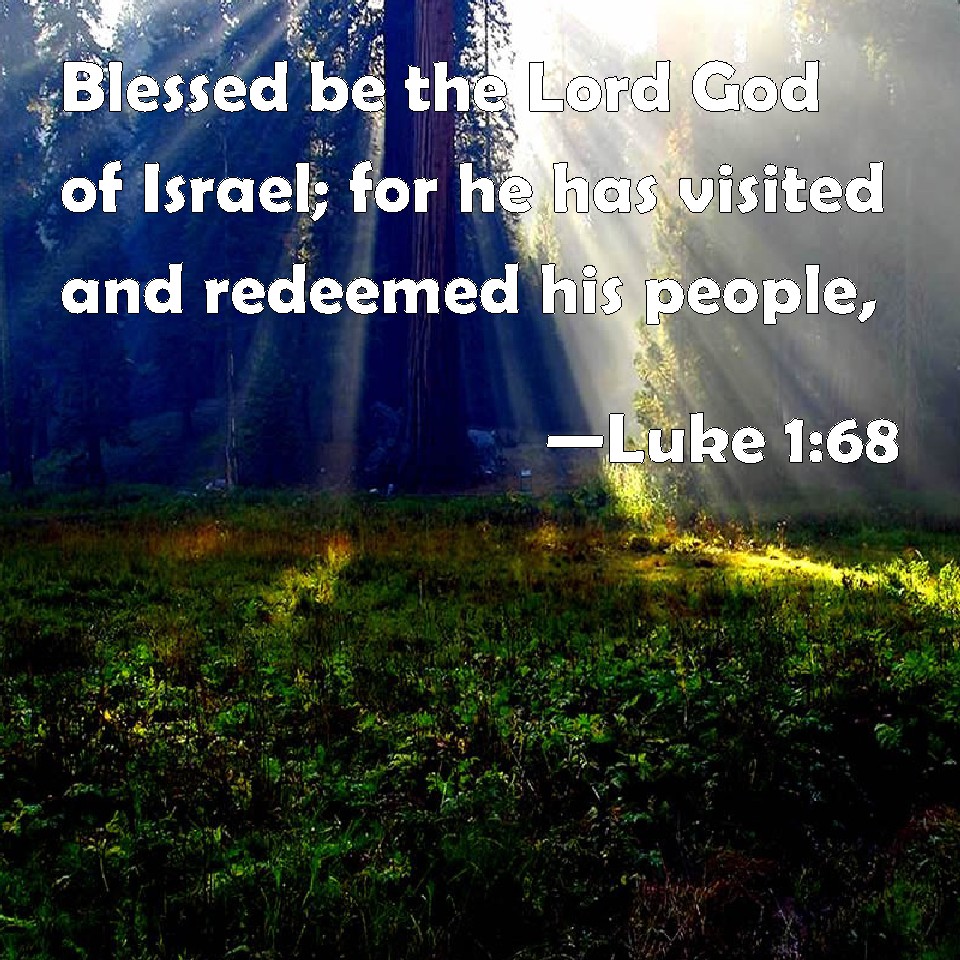 Choose a Background Luke 1:68 Blessed be the Lord God of Israel; for he has visited and redeemed his people, KJV: Blessed be the Lord God of Israel; for he hath visited and redeemed his people, DRB: Blessed be the Lord God of Israel; because he hath visited and wrought the redemption of his people: DBT: Blessed be the Lord the God of Israel, because he has visited and wrought redemption for his people, ERV: Blessed be the Lord, the God of Israel; For he hath visited and wrought redemption for his people, WBT: Blessed be the Lord God of Israel; for he hath visited and redeemed his people. WEB: "Blessed be the Lord, the God of Israel, for he has visited and worked redemption for his people; YLT: Blessed is the Lord, the God of Israel, Because He did look upon, And wrought redemption for His people,Links Luke 1:68 NIV • Luke 1:68 NLT • Luke 1:68 ESV • Luke 1:68 NASB • Luke 1:68 KJV • Luke 1:68 Interlinear • Luke 1:68 Commentaries • Luke 1:68 Parallel Texts • Luke 1:68 Bible Apps • Luke 1:68 Parallel • Bible Hub |