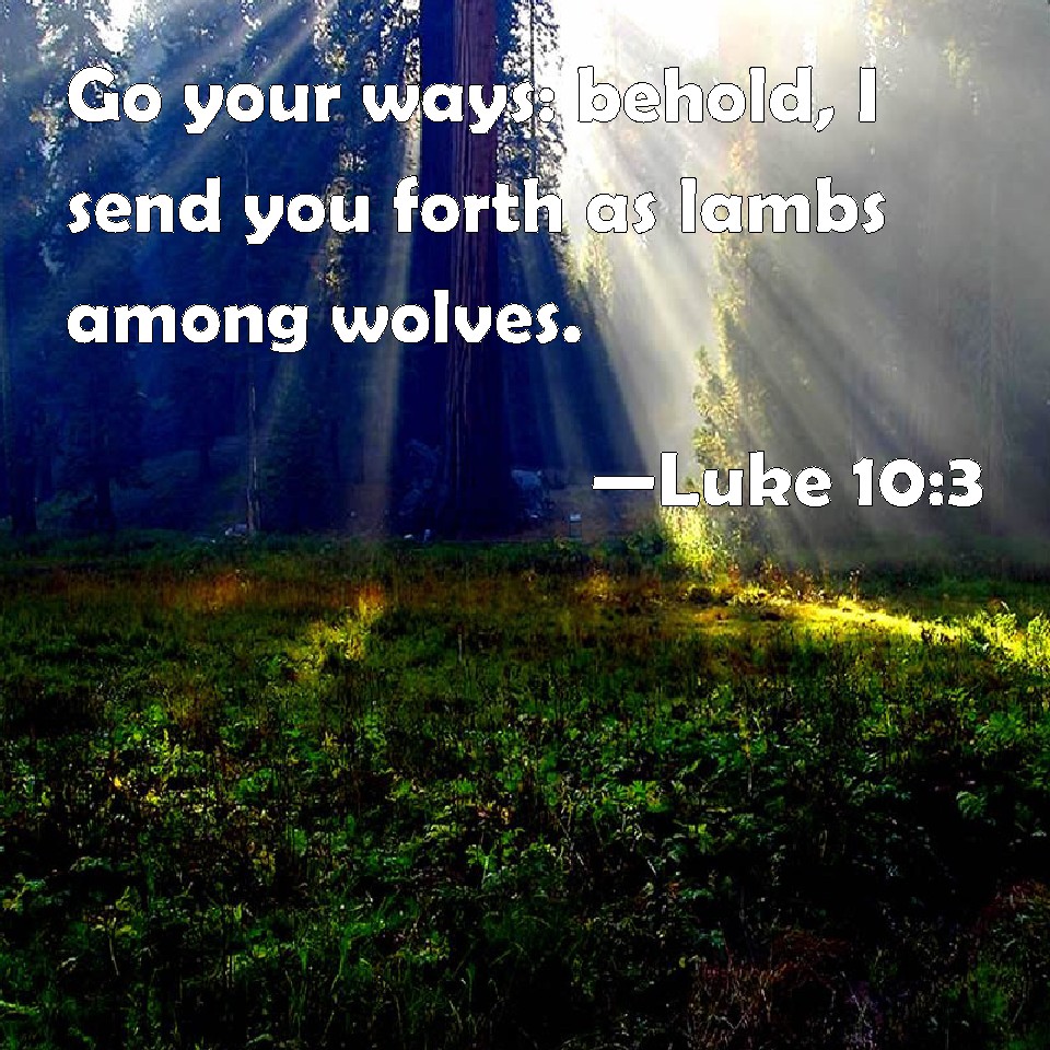 Luke 10:3 Go your ways: behold, I send you forth as lambs among wolves.