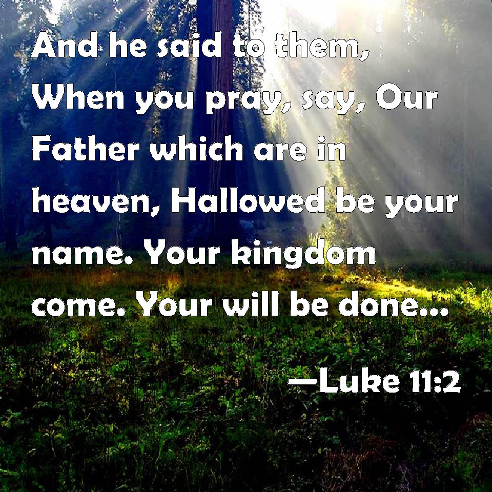 Choose a Background Luke 11:2 And he said to them, When you pray, say, Our Father which are in heaven, Hallowed be your name. Your kingdom come. Your will be done, as in heaven, so in earth. KJV: And he said unto them, When ye pray, say, Our Father which art in heaven, Hallowed be thy name. Thy kingdom come. Thy will be done, as in heaven, so in earth. DRB: And he said to them: When you pray, say: Father, hallowed be thy name. Thy kingdom come. DBT: And he said to them, When ye pray, say, Father, thy name be hallowed; thy kingdom come; ERV: And he said unto them, When ye pray, say, Father, Hallowed be thy name. Thy kingdom come. WBT: And he said to them, When ye pray, say, Our Father who art in heaven, Hallowed be thy name. Thy kingdom come. Thy will be done, as in heaven, so on earth. WEB: He said to them, "When you pray, say, 'Our Father in heaven, may your name be kept holy. May your Kingdom come. May your will be done on Earth, as it is in heaven. YLT: And he said to them, 'When ye may pray, say ye: Our Father who art in the heavens; hallowed be Thy name: Thy reign come; Thy will come to pass, as in heaven also on earth;Links Luke 11:2 NIV • Luke 11:2 NLT • Luke 11:2 ESV • Luke 11:2 NASB • Luke 11:2 KJV • Luke 11:2 Interlinear • Luke 11:2 Commentaries • Luke 11:2 Parallel Texts • Luke 11:2 Bible Apps • Luke 11:2 Parallel • Bible Hub |