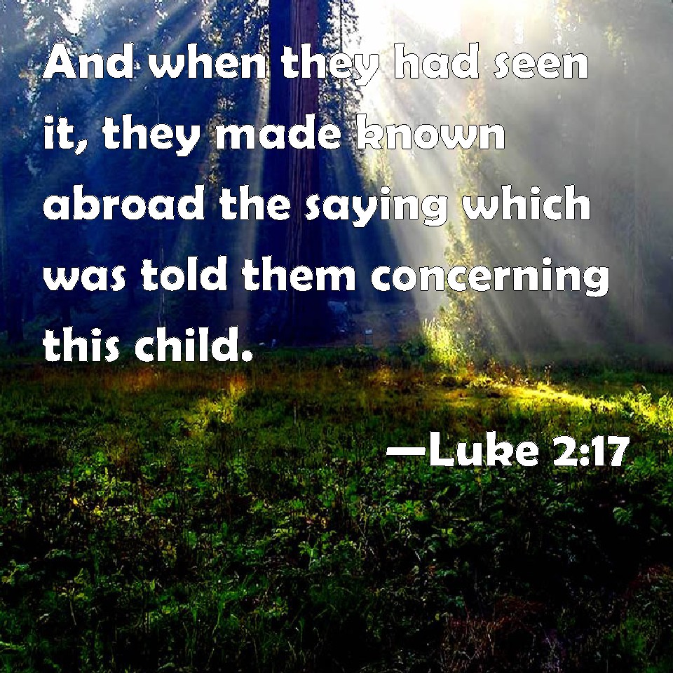 Luke 2:17 And when they had seen it, they made known abroad the saying which was told them concerning this child.
