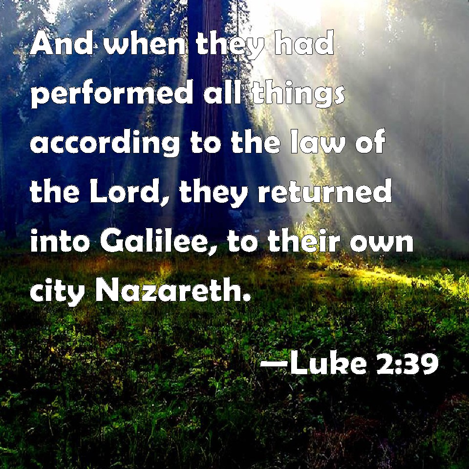 Choose a Background Luke 2:39 And when they had performed all things according to the law of the Lord, they returned into Galilee, to their own city Nazareth. KJV: And when they had performed all things according to the law of the Lord, they returned into Galilee, to their own city Nazareth. DRB: And after they had performed all things according to the law of the Lord, they returned into Galilee, to their city Nazareth. DBT: And when they had completed all things according to the law of the Lord, they returned to Galilee to their own city Nazareth. ERV: And when they had accomplished all things that were according to the law of the Lord, they returned into Galilee, to their own city Nazareth. WBT: And when they had performed all things according to the law of the Lord, they returned into Galilee, to their own city Nazareth. WEB: When they had accomplished all things that were according to the law of the Lord, they returned into Galilee, to their own city, Nazareth. YLT: And when they finished all things, according to the Law of the Lord, they turned back to Galilee, to their city Nazareth;Links Luke 2:39 NIV • Luke 2:39 NLT • Luke 2:39 ESV • Luke 2:39 NASB • Luke 2:39 KJV • Luke 2:39 Interlinear • Luke 2:39 Commentaries • Luke 2:39 Parallel Texts • Luke 2:39 Bible Apps • Luke 2:39 Parallel • Bible Hub |