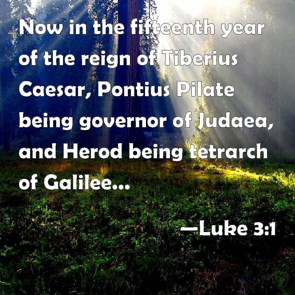 Choose a Background Luke 3:1 Now in the fifteenth year of the reign of Tiberius Caesar, Pontius Pilate being governor of Judaea, and Herod being tetrarch of Galilee, and his brother Philip tetrarch of Ituraea and of the region of Trachonitis, and Lysanias the tetrarch of Abilene, KJV: Now in the fifteenth year of the reign of Tiberius Caesar, Pontius Pilate being governor of Judaea, and Herod being tetrarch of Galilee, and his brother Philip tetrarch of Ituraea and of the region of Trachonitis, and Lysanias the tetrarch of Abilene, DRB: NOW in the fifteenth year of the reign of Tiberius Caesar, Pontius Pilate being governor of Judea, and Herod being tetrarch of Galilee, and Philip his brother tetrarch of Iturea, and the country of Trachonitis, and Lysanias tetrarch of Abilina; DBT: Now in the fifteenth year of the government of Tiberius Caesar, Pontius Pilate being governor of Judaea, and Herod tetrarch of Galilee, and Philip his brother tetrarch of Ituraea and the region of Trachonitis, and Lysanias tetrarch of Abilene, ERV: Now in the fifteenth year of the reign of Tiberius Caesar, Pontius Pilate being governor of Judaea, and Herod being tetrarch of Galilee, and his brother Philip tetrarch of the region of Ituraea and Trachonitis, and Lysanias tetrarch of Abilene, WBT: Now in the fifteenth year of the reign of Tiberius Cesar, Pontius Pilate being governor of Judea, and Herod being tetrarch of Galilee, and his brother Philip tetrarch of Iturea and of the region of Trachonitis, and Lysanius the tetrarch of Abilene, WEB: Now in the fifteenth year of the reign of Tiberius Caesar, Pontius Pilate being governor of Judea, and Herod being tetrarch of Galilee, and his brother Philip tetrarch of the region of Ituraea and Trachonitis, and Lysanias tetrarch of Abilene, YLT: And in the fifteenth year of the government of Tiberius Caesar — Pontius Pilate being governor of Judea, and Herod tetrarch of Galilee, and Philip his brother, tetrarch of Ituraea and of the region of Trachonitis, and Lysanias tetrarch of Abilene — Links Luke 3:1 NIV • Luke 3:1 NLT • Luke 3:1 ESV • Luke 3:1 NASB • Luke 3:1 KJV • Luke 3:1 Interlinear • Luke 3:1 Commentaries • Luke 3:1 Parallel Texts • Luke 3:1 Bible Apps • Luke 3:1 Parallel • Bible Hub |