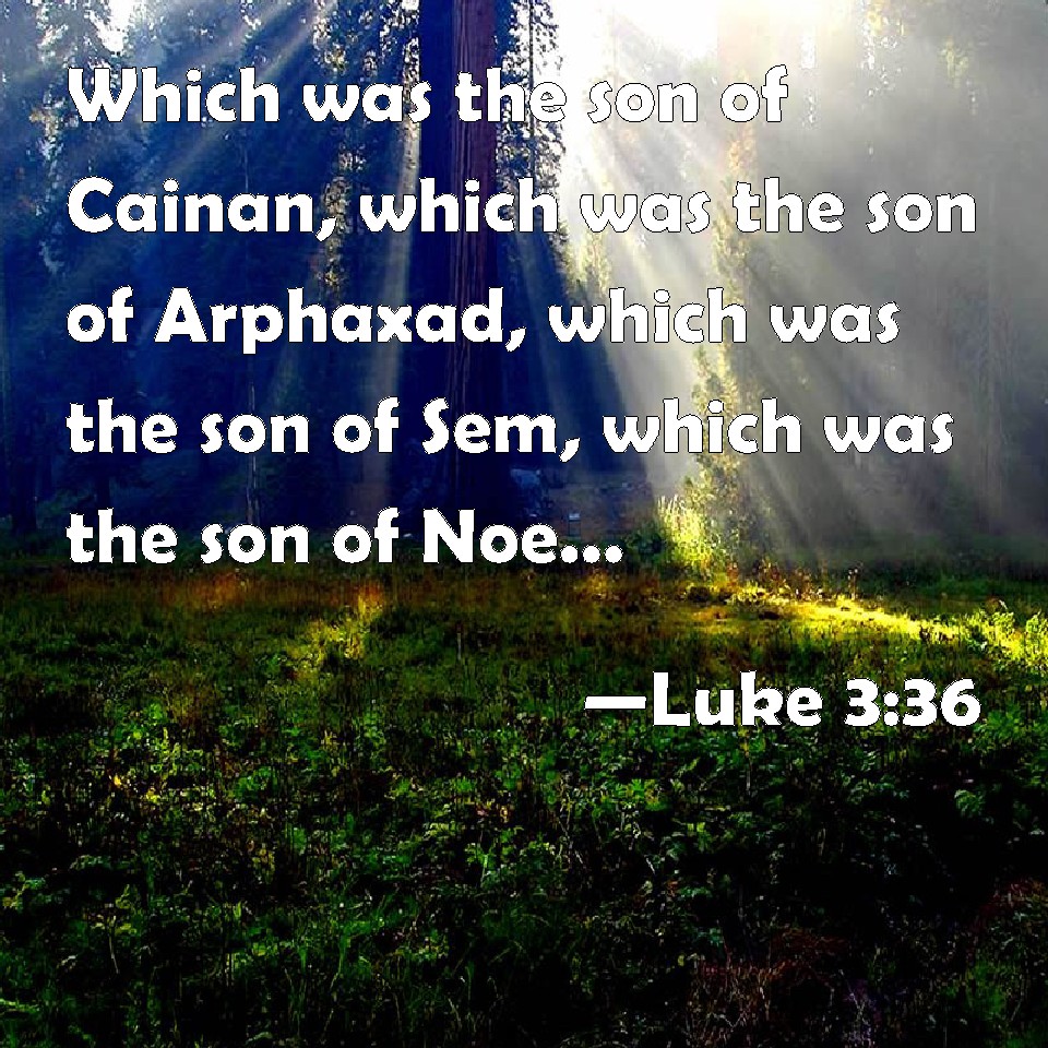 Choose a Background Luke 3:36 Which was the son of Cainan, which was the son of Arphaxad, which was the son of Sem, which was the son of Noe, which was the son of Lamech, KJV: Which was the son of Cainan, which was the son of Arphaxad, which was the son of Sem, which was the son of Noe, which was the son of Lamech, DRB: Who was of Cainan, who was of Arphaxad, who was of Sem, who was of Noe, who was of Lamech, DBT: of Cainan, of Arphaxad, of Sem, of Noe, of Lamech, ERV: the son of Cainan, the son of Arphaxad, the son of Shem, the son of Noah, the son of Lamech, WBT: Who was the son of Cainan, who was the son of Arphaxad, who was the son of Shem, who was the son of Noah, who was the son of Lamech, WEB: the son of Cainan, the son of Arphaxad, the son of Shem, the son of Noah, the son of Lamech, YLT: the son of Salah, the son of Cainan, the son of Arphaxad, the son of Shem, the son of Noah, the son of Lamech,Links Luke 3:36 NIV • Luke 3:36 NLT • Luke 3:36 ESV • Luke 3:36 NASB • Luke 3:36 KJV • Luke 3:36 Interlinear • Luke 3:36 Commentaries • Luke 3:36 Parallel Texts • Luke 3:36 Bible Apps • Luke 3:36 Parallel • Bible Hub |