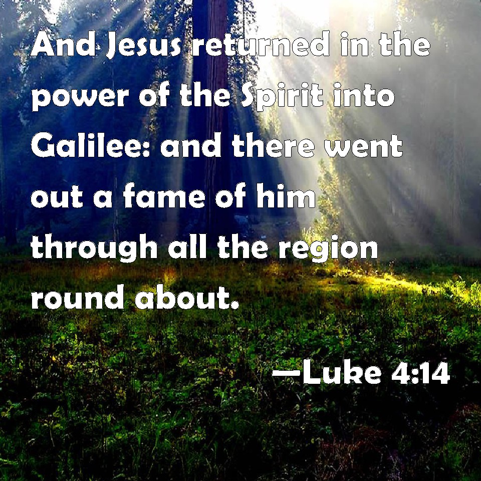 Luke 4:14 And Jesus returned in the power of the Spirit into Galilee: and there went out a fame of him through all the region round about.