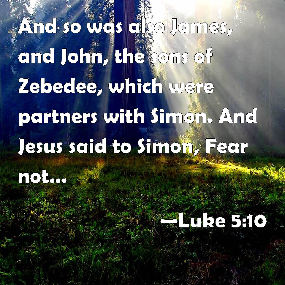 Luke 5:10 And so was also James, and John, the sons of Zebedee, which were partners with Simon. And Jesus said to Simon, Fear not; from now on you shall catch men.