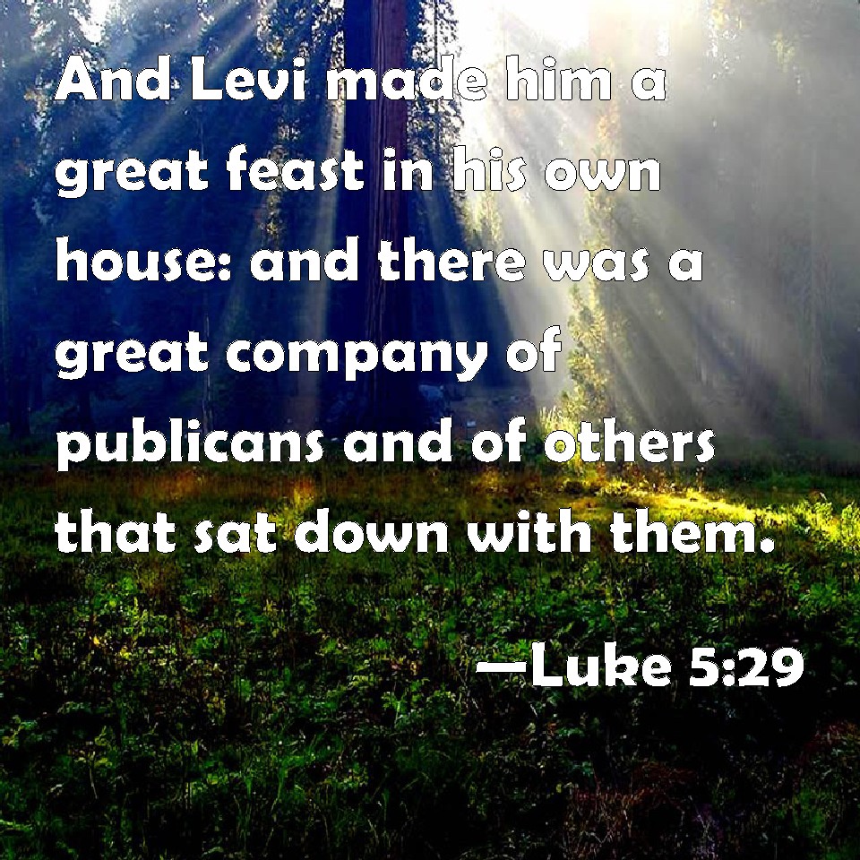 Luke 5:29 And Levi made him a great feast in his own house: and there was a great company of publicans and of others that sat down with them.