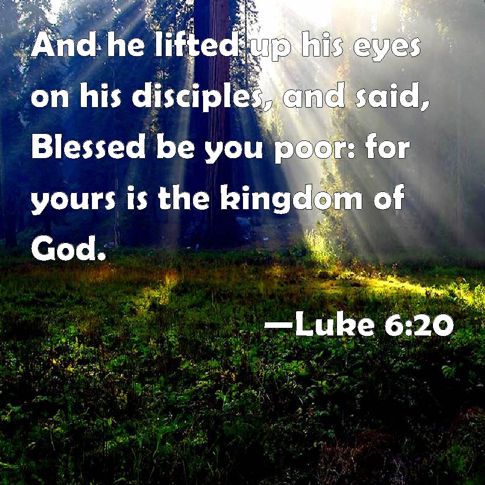 Choose a Background Luke 6:20 And he lifted up his eyes on his disciples, and said, Blessed be you poor: for yours is the kingdom of God. KJV: And he lifted up his eyes on his disciples, and said, Blessed be ye poor: for yours is the kingdom of God. DRB: And he, lifting up his eyes on his disciples, said: Blessed are ye poor, for yours is the kingdom of God. DBT: And he, lifting up his eyes upon his disciples, said, Blessed are ye poor, for yours is the kingdom of God. ERV: And he lifted up his eyes on his disciples, and said, Blessed are ye poor: for yours is the kingdom of God. WBT: And he lifted up his eyes on his disciples, and said, Blessed are ye poor: for yours is the kingdom of God. WEB: He lifted up his eyes to his disciples, and said, "Blessed are you who are poor, for yours is the Kingdom of God. YLT: And he, having lifted up his eyes to his disciples, said: 'Happy the poor — because yours is the reign of God.Links Luke 6:20 NIV • Luke 6:20 NLT • Luke 6:20 ESV • Luke 6:20 NASB • Luke 6:20 KJV • Luke 6:20 Interlinear • Luke 6:20 Commentaries • Luke 6:20 Parallel Texts • Luke 6:20 Bible Apps • Luke 6:20 Parallel • Bible Hub |