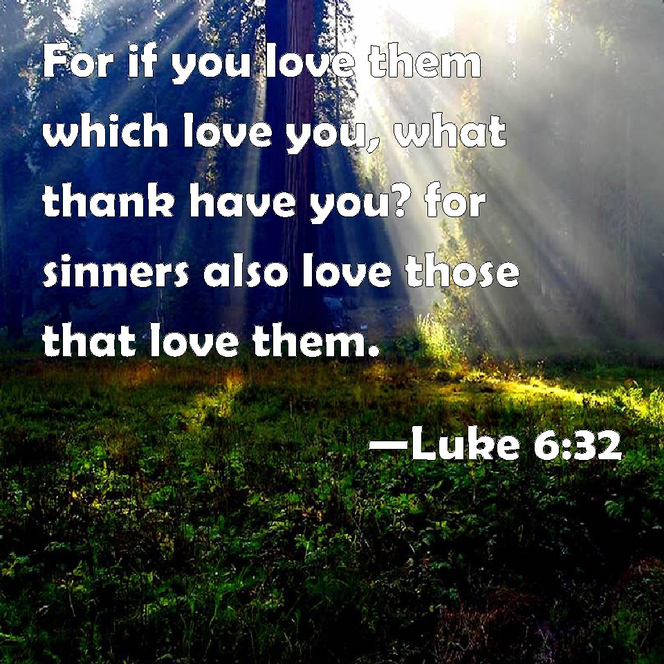 Luke 6:32 For if you love them which love you, what thank have you? for sinners also love those that love them.