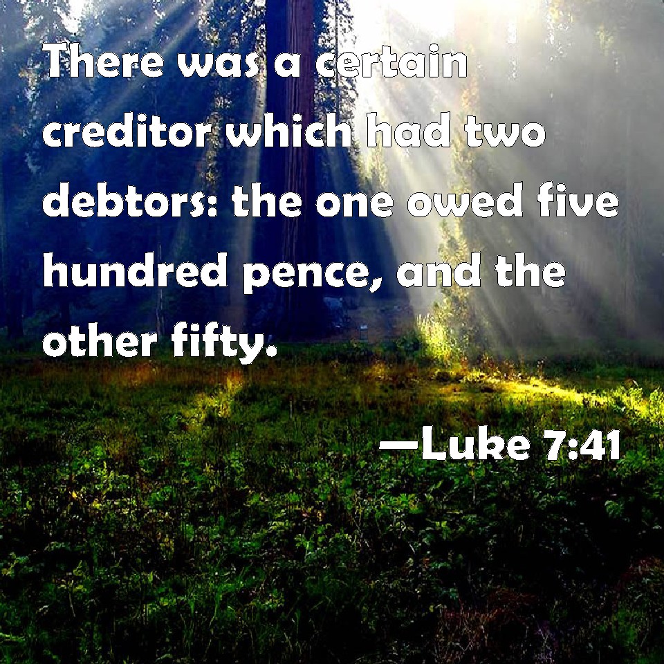 Luke 7:41 There was a certain creditor which had two debtors: the one owed five hundred pence, and the other fifty.