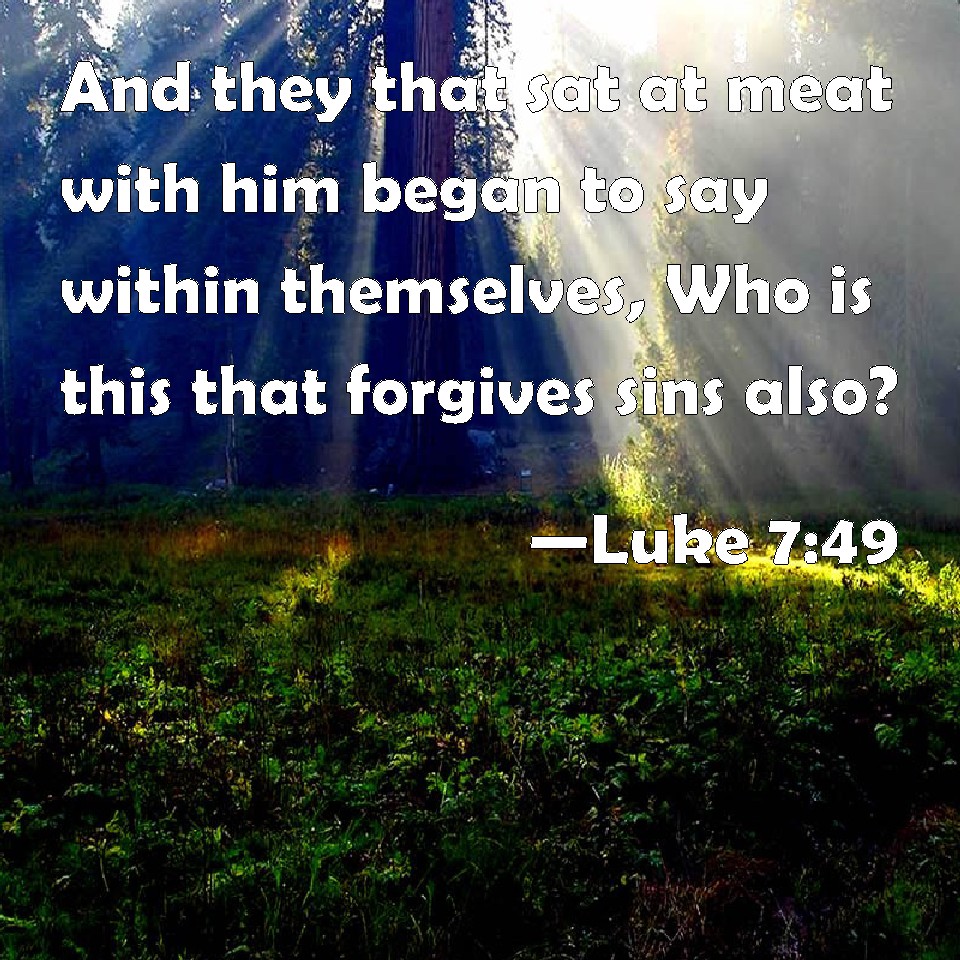 Luke 7:49 And they that sat at meat with him began to say within themselves, Who is this that forgives sins also?