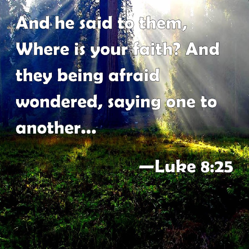 Choose a Background Luke 8:25 And he said to them, Where is your faith? And they being afraid wondered, saying one to another, What manner of man is this! for he commands even the winds and water, and they obey him. KJV: And he said unto them, Where is your faith? And they being afraid wondered, saying one to another, What manner of man is this! for he commandeth even the winds and water, and they obey him. DRB: And he said to them: Where is your faith? Who being afraid, wondered, saying one to another: Who is this, (think you), that he commandeth both the winds and the sea, and they obey him? DBT: And he said to them, Where is your faith? And, being afraid, they were astonished, saying to one another, Who then is this, that he commands even the winds and the water, and they obey him? ERV: And he said unto them, Where is your faith? And being afraid they marveled, saying one to another, Who then is this, that he commandeth even the winds and the water, and they obey him? WBT: And he said to them, Where is your faith? And they being afraid, wondered, saying one to another, What manner of man is this! for he commandeth even the winds and water, and they obey him. WEB: He said to them, "Where is your faith?" Being afraid they marveled, saying one to another, "Who is this, then, that he commands even the winds and the water, and they obey him?" YLT: and he said to them, 'Where is your faith?' and they being afraid did wonder, saying unto one another, 'Who, then, is this, that even the winds he doth command, and the water, and they obey him?'Links Luke 8:25 NIV • Luke 8:25 NLT • Luke 8:25 ESV • Luke 8:25 NASB • Luke 8:25 KJV • Luke 8:25 Interlinear • Luke 8:25 Commentaries • Luke 8:25 Parallel Texts • Luke 8:25 Bible Apps • Luke 8:25 Parallel • Bible Hub |
