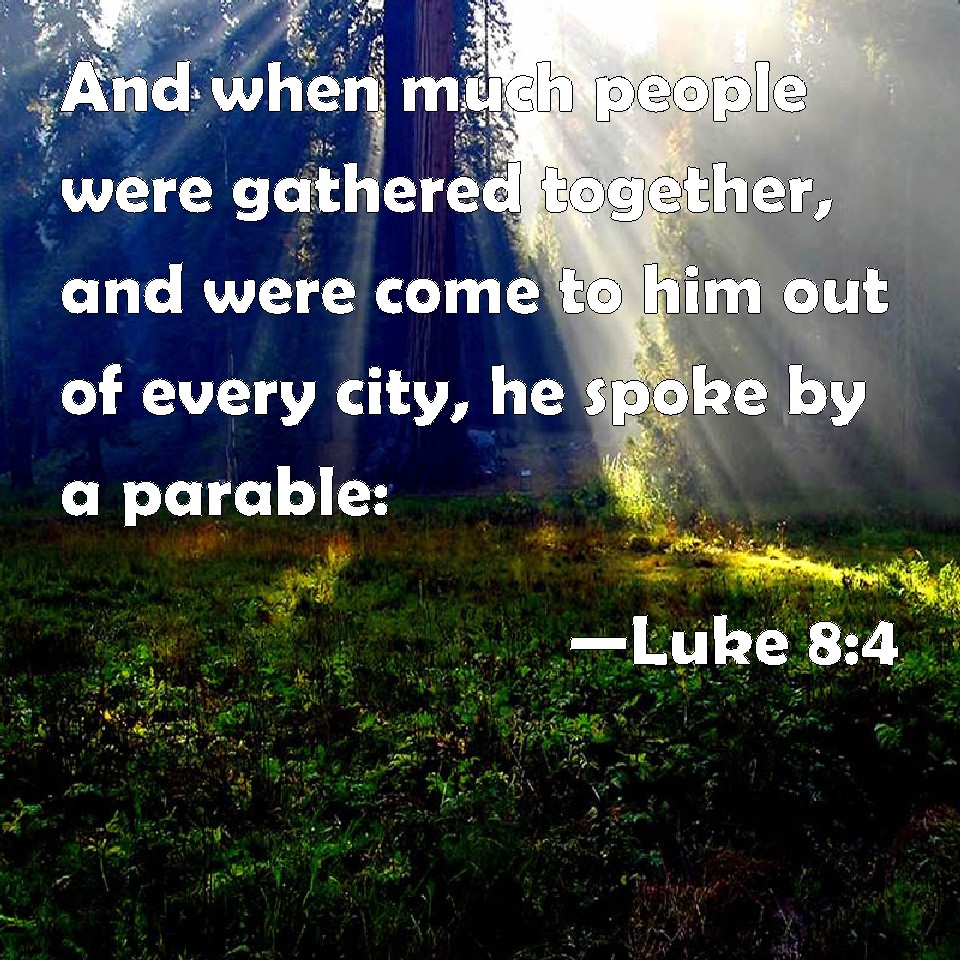Choose a Background Luke 8:4 And when much people were gathered together, and were come to him out of every city, he spoke by a parable: KJV: And when much people were gathered together, and were come to him out of every city, he spake by a parable: DRB: And when a very great multitude was gathered together, and hastened out of the cities unto him, he spoke by a similitude. DBT: And a great crowd coming together, and those who were coming to him out of each city, he spoke by parable: ERV: And when a great multitude came together, and they of every city resorted unto him, he spake by a parable: WBT: And when many people were collected, and had come to him out of every city, he spoke by a parable: WEB: When a great multitude came together, and people from every city were coming to him, he spoke by a parable. YLT: And a great multitude having gathered, and those who from city and city were coming unto him, he spake by a simile:Links Luke 8:4 NIV • Luke 8:4 NLT • Luke 8:4 ESV • Luke 8:4 NASB • Luke 8:4 KJV • Luke 8:4 Interlinear • Luke 8:4 Commentaries • Luke 8:4 Parallel Texts • Luke 8:4 Bible Apps • Luke 8:4 Parallel • Bible Hub |