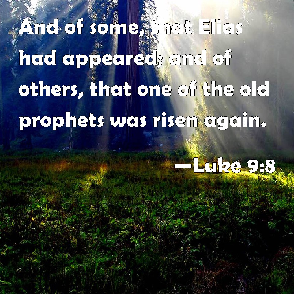 Choose a Background Luke 9:8 And of some, that Elias had appeared; and of others, that one of the old prophets was risen again. KJV: And of some, that Elias had appeared; and of others, that one of the old prophets was risen again. DRB: By some, that John was risen from the dead: but by other some, that Elias had appeared; and by others, that one of the old prophets was risen again. DBT: and by some that Elias had appeared, and by others that one of the old prophets had risen again. ERV: and by some, that Elijah had appeared; and by others, that one of the old prophets was risen again. WBT: And by some, that Elijah had appeared; and by others, that one of the ancient prophets had risen again. WEB: and by some that Elijah had appeared, and by others that one of the old prophets had risen again. YLT: and by certain, that Elijah did appear, and by others, that a prophet, one of the ancients, was risen;Links Luke 9:8 NIV • Luke 9:8 NLT • Luke 9:8 ESV • Luke 9:8 NASB • Luke 9:8 KJV • Luke 9:8 Interlinear • Luke 9:8 Commentaries • Luke 9:8 Parallel Texts • Luke 9:8 Bible Apps • Luke 9:8 Parallel • Bible Hub |