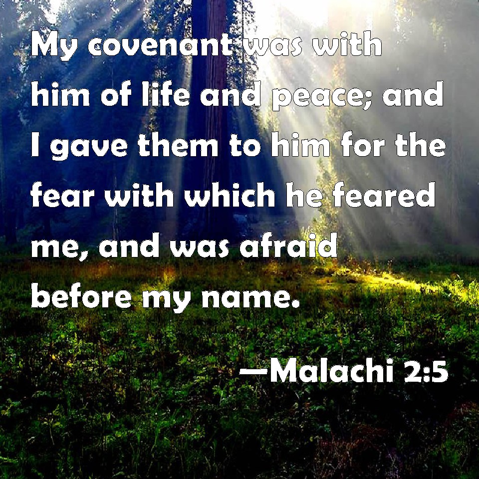 Choose a Background Malachi 2:5 My covenant was with him of life and peace; and I gave them to him for the fear with which he feared me, and was afraid before my name. KJV: My covenant was with him of life and peace; and I gave them to him for the fear wherewith he feared me, and was afraid before my name. DRB: My covenant was with him of life and peace: and I gave him fear: and he feared me, and he was afraid before my name. DBT: My covenant with him was of life and peace, and I gave them to him that he might fear; and he feared me, and trembled before my name. ERV: My covenant was with him of life and peace; and I gave them to him that he might fear, and he feared me, and stood in awe of my name. WBT: My covenant was with him of life and peace; and I gave them to him for the fear with which he feared me, and was afraid before my name. WEB: "My covenant was with him of life and peace; and I gave them to him that he might be reverent toward me; and he was reverent toward me, and stood in awe of my name. YLT: My covenant hath been with him of life and of peace, And I make them to him a fear, and he doth fear Me, And because of My name he hath been affrighted.Links Malachi 2:5 NIV • Malachi 2:5 NLT • Malachi 2:5 ESV • Malachi 2:5 NASB • Malachi 2:5 KJV • Malachi 2:5 Interlinear • Malachi 2:5 Commentaries • Malachi 2:5 Parallel Texts • Malachi 2:5 Bible Apps • Malachi 2:5 Parallel • Bible Hub |