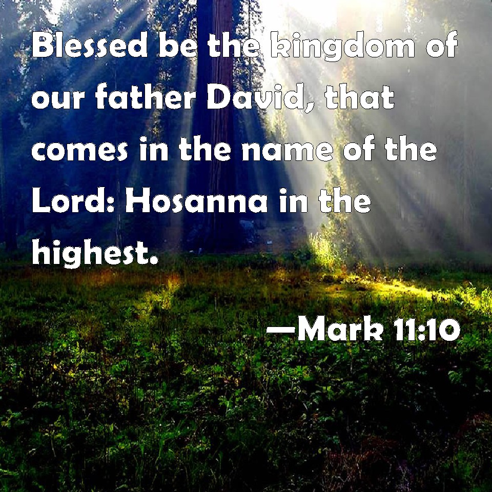Mark 11:10 Blessed be the kingdom of our father David, that comes in the name of the Lord: Hosanna in the highest.