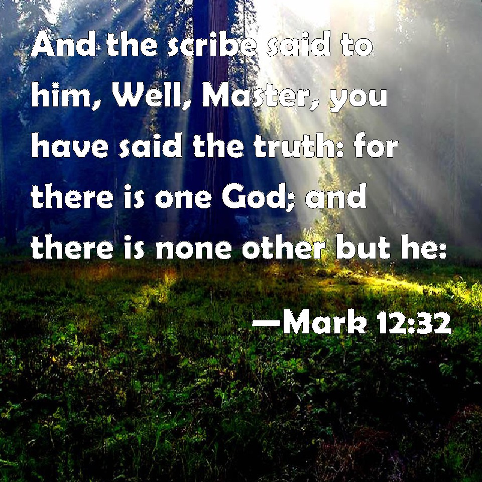 Choose a Background Mark 12:32 And the scribe said to him, Well, Master, you have said the truth: for there is one God; and there is none other but he: KJV: And the scribe said unto him, Well, Master, thou hast said the truth: for there is one God; and there is none other but he: DRB: And the scribe said to him: Well, Master, thou hast said in truth, that there is one God, and there is no other besides him. DBT: And the scribe said to him, Right, teacher; thou hast spoken according to the truth. For he is one, and there is none other besides him; ERV: And the scribe said unto him, Of a truth, Master, thou hast well said that he is one; and there is none other but he: WBT: And the scribe said to him, Well, Master, thou hast said the truth: for there is one God; and there is no other but he. WEB: The scribe said to him, "Truly, teacher, you have said well that he is one, and there is none other but he, YLT: And the scribe said to him, 'Well, Teacher, in truth thou hast spoken that there is one God, and there is none other but He;Links Mark 12:32 NIV • Mark 12:32 NLT • Mark 12:32 ESV • Mark 12:32 NASB • Mark 12:32 KJV • Mark 12:32 Interlinear • Mark 12:32 Commentaries • Mark 12:32 Parallel Texts • Mark 12:32 Bible Apps • Mark 12:32 Parallel • Bible Hub |
