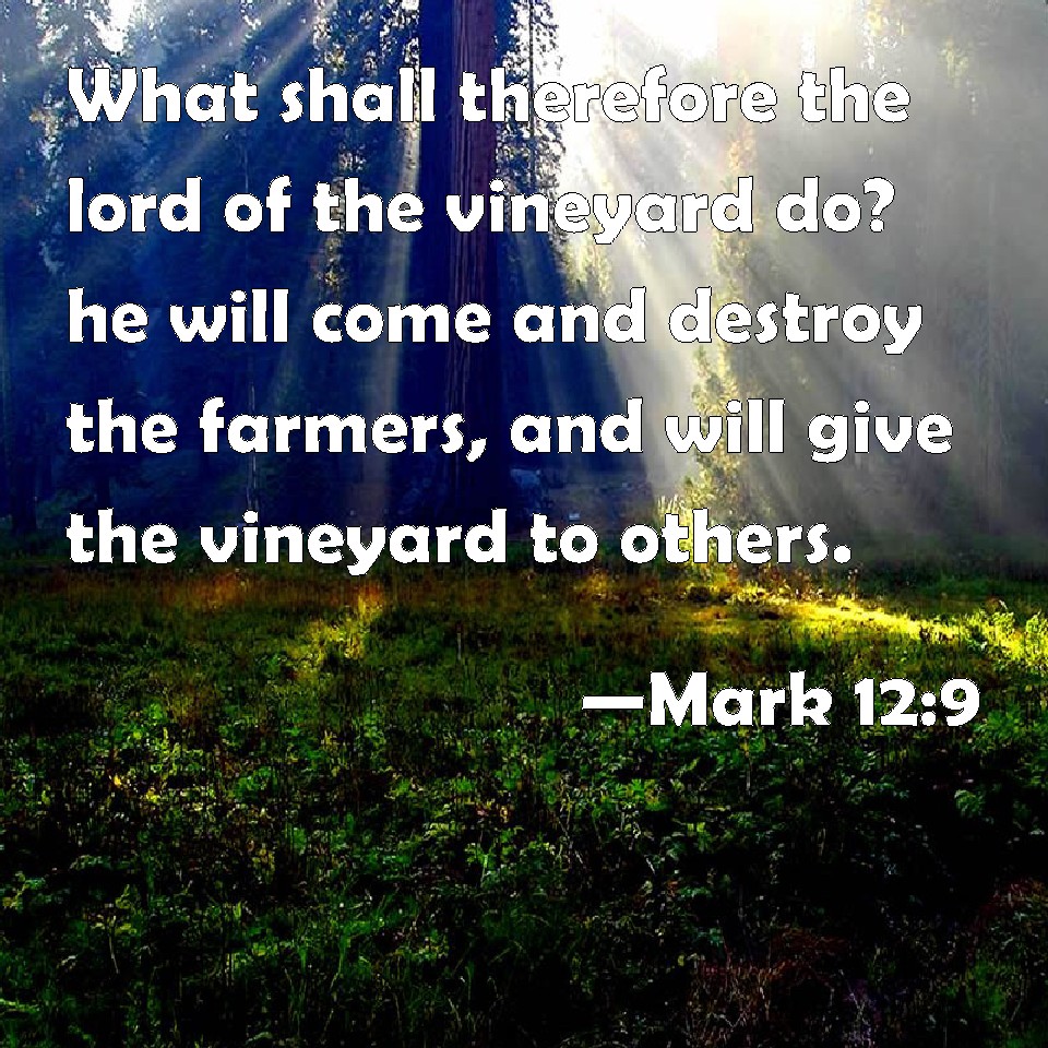 Mark 12:9 What shall therefore the lord of the vineyard do? he will come and destroy the farmers, and will give the vineyard to others.