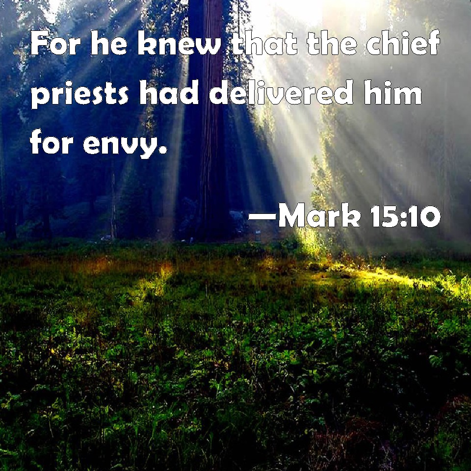 Mark 15:10 For he knew that the chief priests had delivered him for envy.
