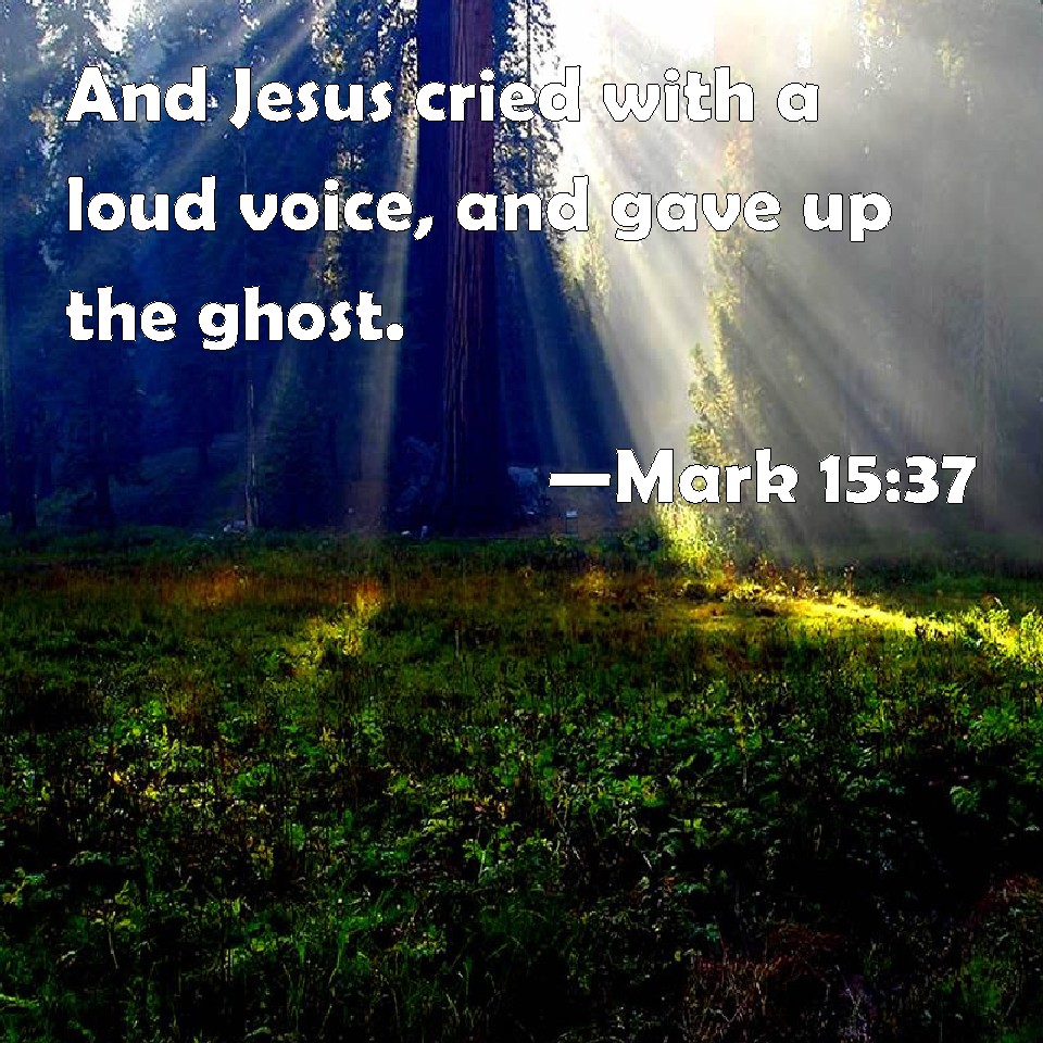 Choose a Background Mark 15:37 And Jesus cried with a loud voice, and gave up the ghost. KJV: And Jesus cried with a loud voice, and gave up the ghost. DRB: And Jesus having cried out with a loud voice, gave up the ghost. DBT: And Jesus, having uttered a loud cry, expired. ERV: And Jesus uttered a loud voice, and gave up the ghost. WBT: And Jesus cried with a loud voice, and expired. WEB: Jesus cried out with a loud voice, and gave up the spirit. YLT: And Jesus having uttered a loud cry, yielded the spirit,Links Mark 15:37 NIV • Mark 15:37 NLT • Mark 15:37 ESV • Mark 15:37 NASB • Mark 15:37 KJV • Mark 15:37 Interlinear • Mark 15:37 Commentaries • Mark 15:37 Parallel Texts • Mark 15:37 Bible Apps • Mark 15:37 Parallel • Bible Hub |