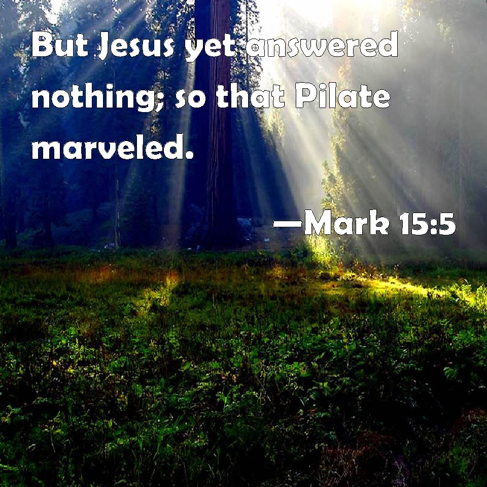 Mark 15:5 But Jesus yet answered nothing; so that Pilate marveled.