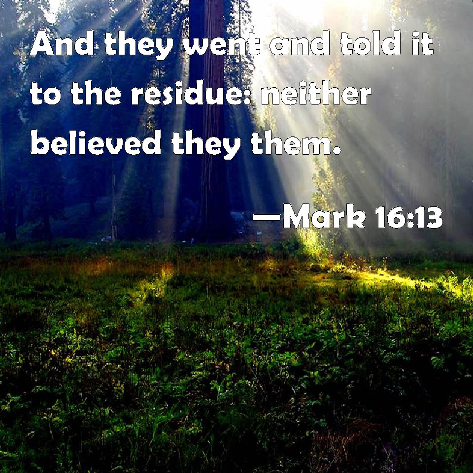Mark 16:13 And they went and told it to the residue: neither believed they them.