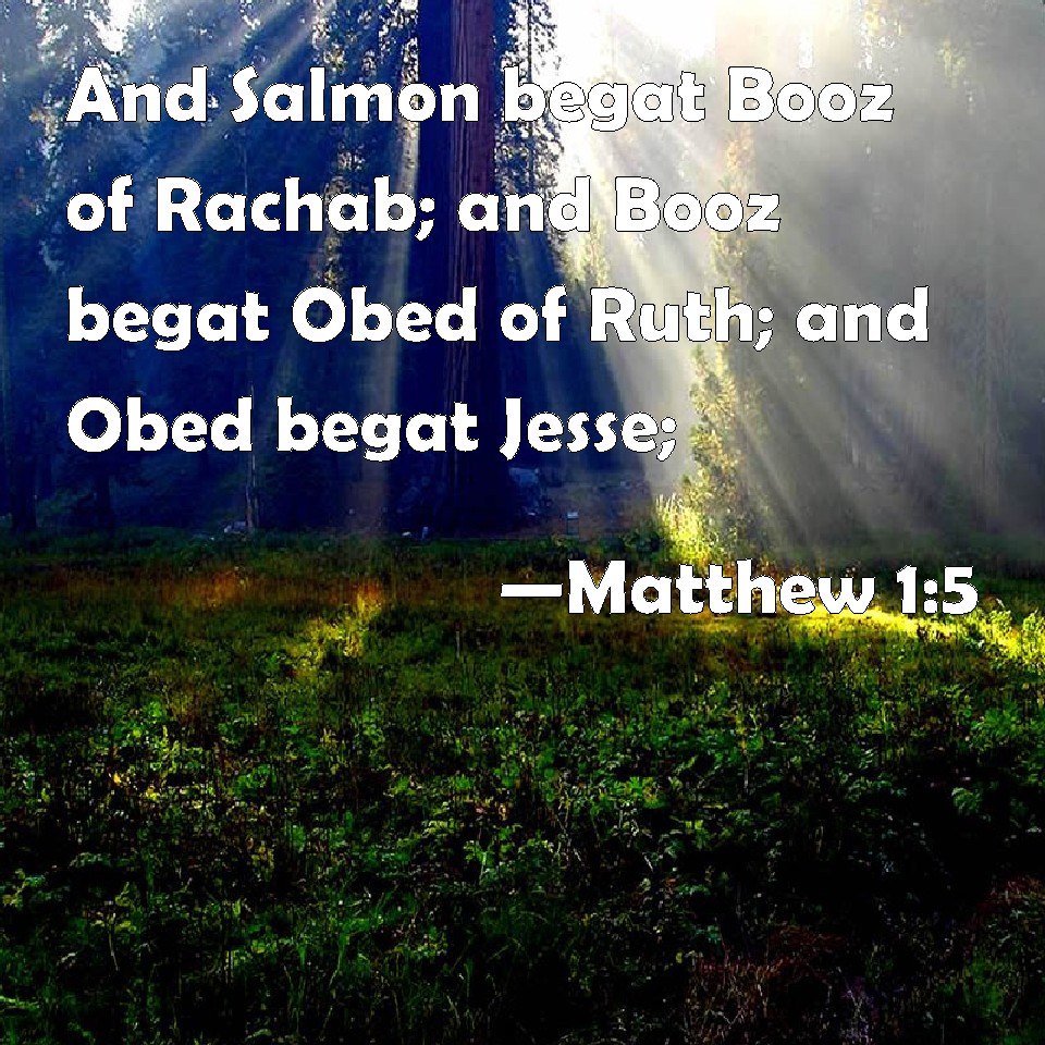 And Salmon begot Booz of Rahab. And Booz begot Obed of Ruth. And Obed begot Jesse.