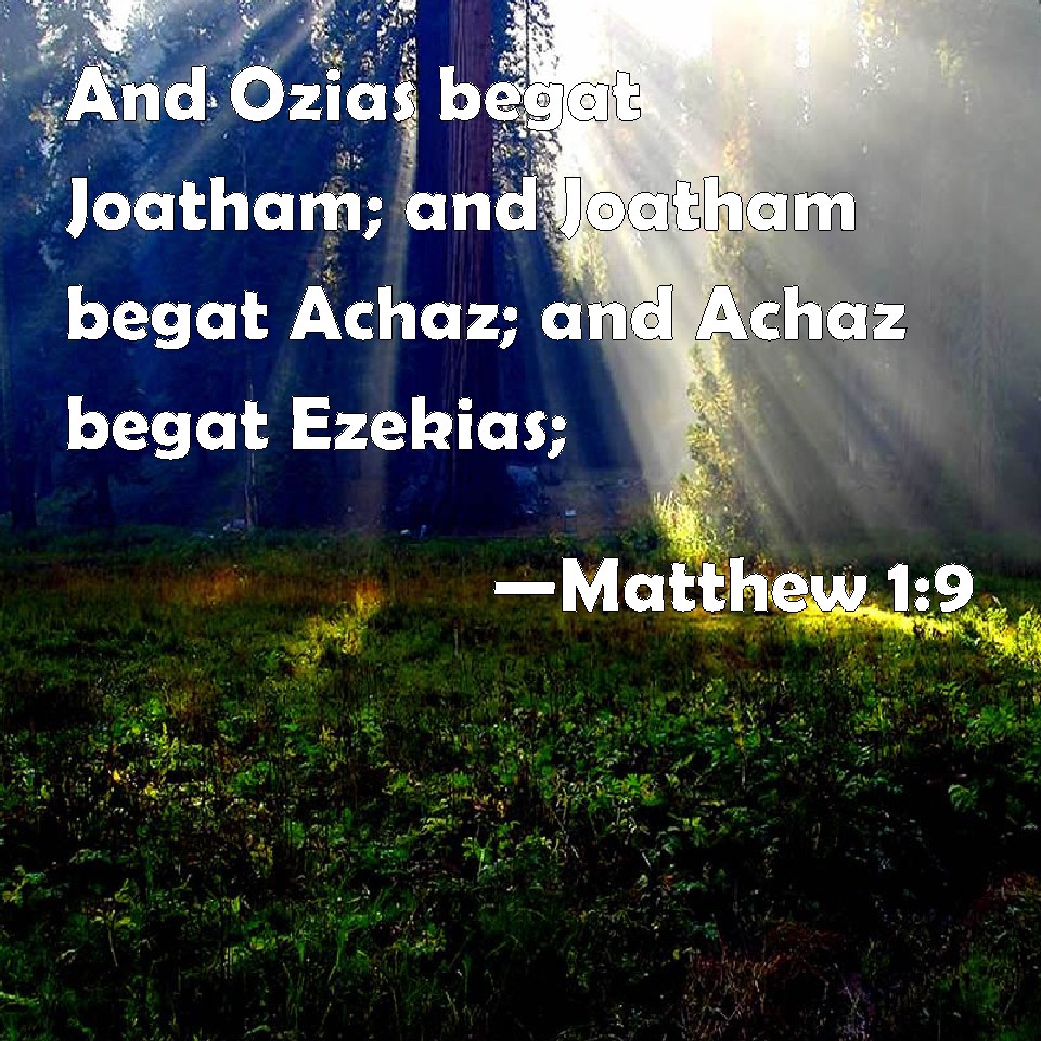 Matthew 1:9 And Ozias begat Joatham; and Joatham begat Achaz; and Achaz begat Ezekias;