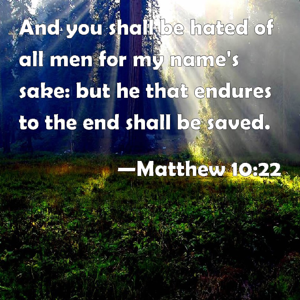 Matthew 10:22 And you shall be hated of all men for my name's sake: but he that endures to the end shall be saved.