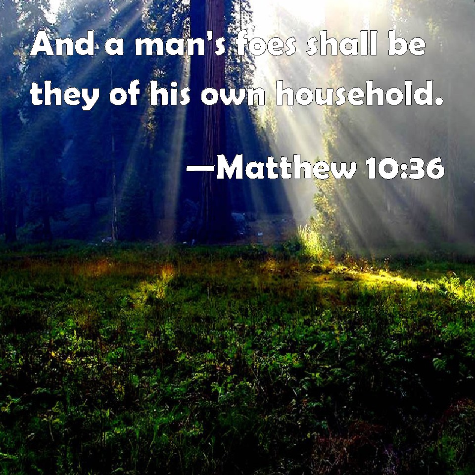 Matthew 10:36 And a man's foes shall be they of his own household.