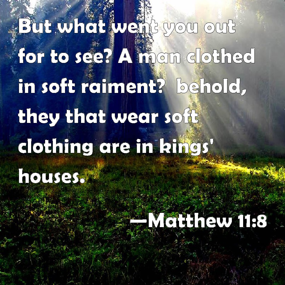 Matthew 11:8 But what went you out for to see? A man clothed in soft raiment? behold, they that wear soft clothing are in kings' houses.