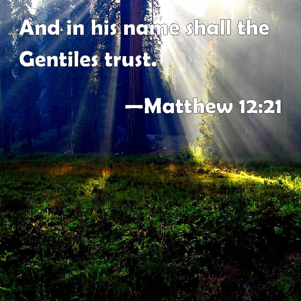 Matthew 12:21 And in his name shall the Gentiles trust.