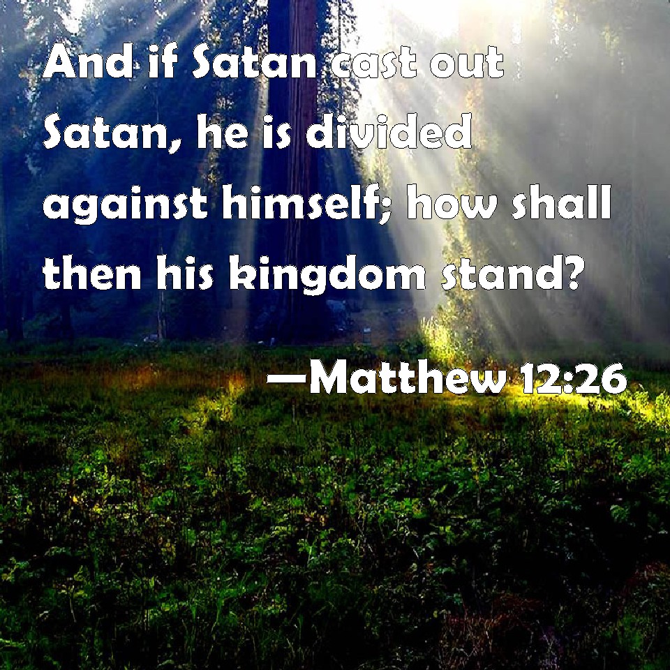 Matthew 12:26 And if Satan cast out Satan, he is divided against himself; how shall then his kingdom stand?